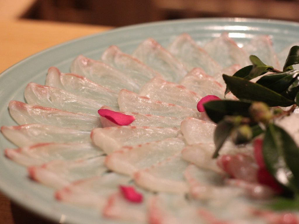 極上の鯛を贅沢に薄造りにして堪能できます。