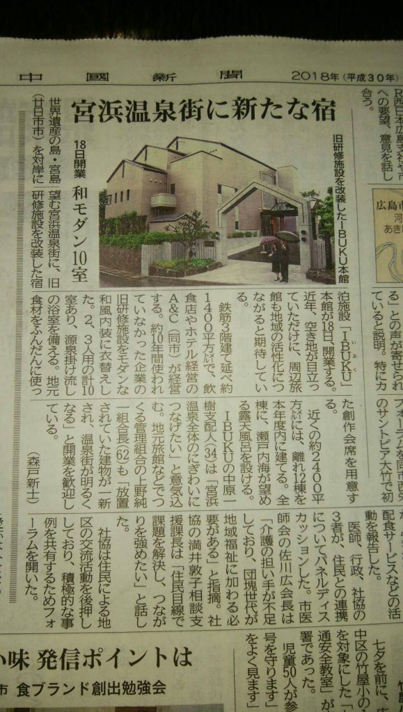 「宮浜温泉街に新たな宿」という題名でIBUKUの概要を記して頂き、