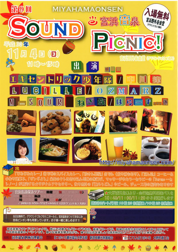 恒例イベントになっている「宮浜音泉サウンド ピクニック♪」が11/4に開催されます。