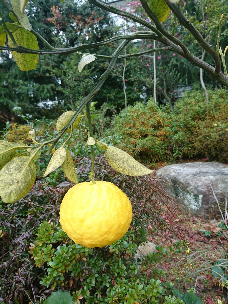IBUKUでも庭で育てた獅子柚子(鬼柚子)が大きく育ってきています。