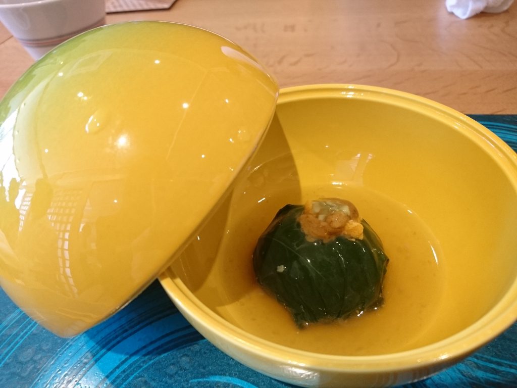 手前には椿の花を酢漬けにしたものもアクセントに使っております。