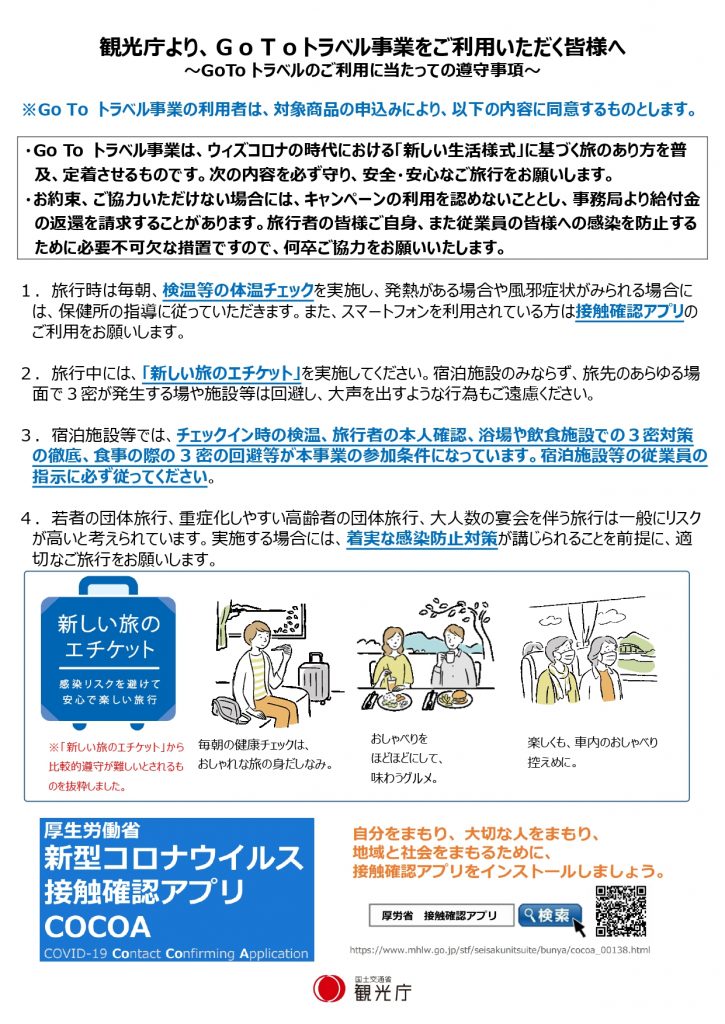 また、旅行者が順守すべき事項の周知徹底を行う事。が参加宿泊事業者には必要になっています。