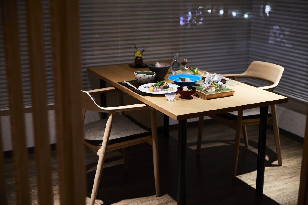 お食事処は、プライベート空間を大切にした半個室。お料理の色や香り、お味をダイレクトに味わっていただける澄んだ空間にいたしました。