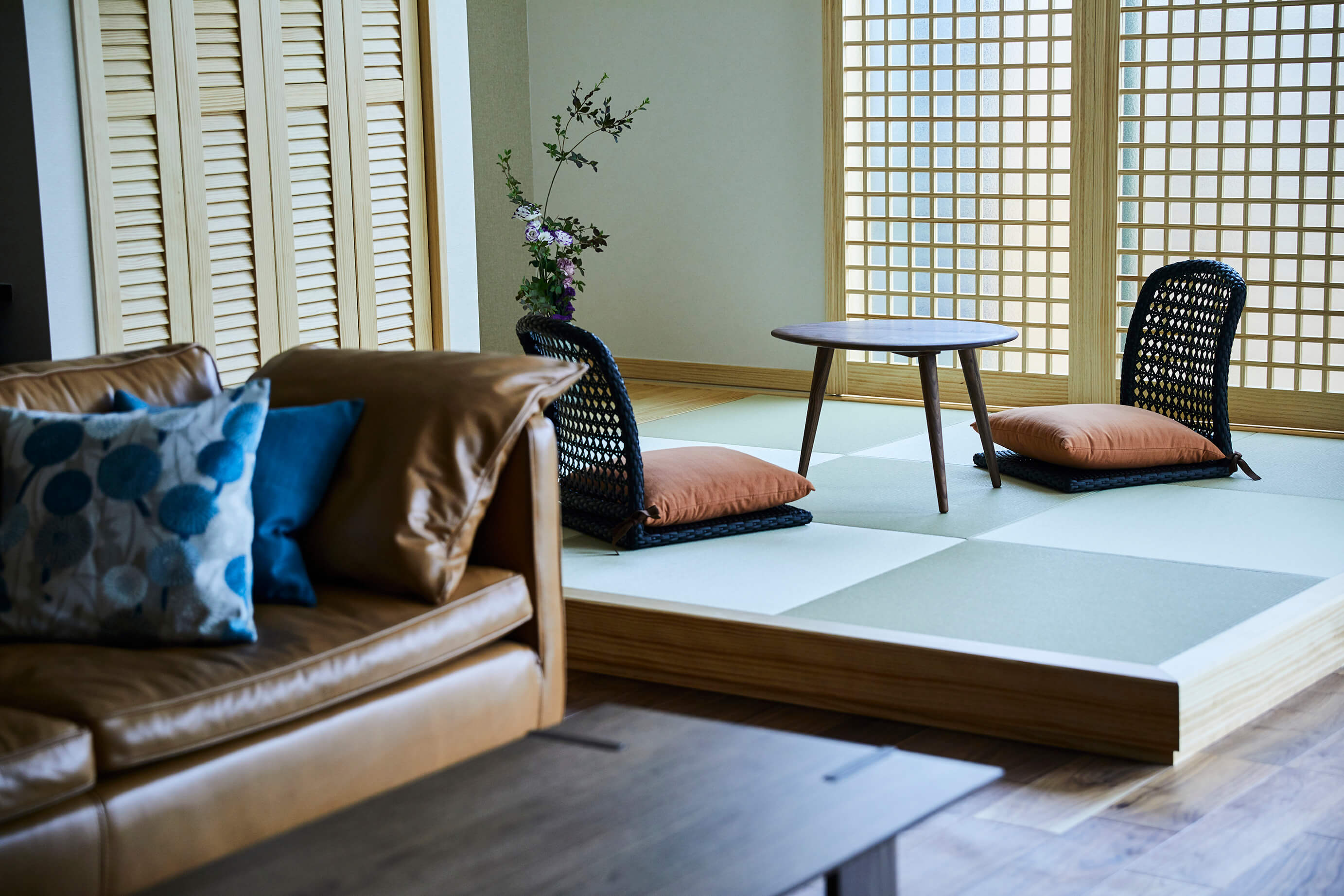 【面積】 70㎡ 【寝具】 Serta社セミダブルベッド(120×200cm)2台、和布団1組 【浴室】 ラドンが豊富な宮浜温泉の源泉、美泡湯装置、Bluetoothスピーカー、月明かりのようなLED照明 【テレビ】 BRAVIA65インチ、YouTube視聴可能 【着替え】 部屋着:シャツガウン、館内外着:上下織物の作務衣・靴下 【履物】 テラス用サンダル、雪駄(男女デザイン別) 【バッグ】 麻の風呂敷バッグと湯かご 【アメニティ】 英国Laura Ashley製シャンプー・コンディショナー・ボディーソープ、シャワーキャップ、POLAスキンケアセット、歯ブラシセット、コットン、綿棒、ヘアゴム、ヘアブラシ、カミソリ、ドライヤー、ボディータオル、ハンドソープ(フェイス・シェイビング兼用)、使い捨てスリッパ、拡大鏡、虫対策グッズ 【電化製品】 冷蔵庫(冷凍室なし)、電気ポット、空気清浄機(加湿器付き)、金庫、スマートスピーカー(グーグルホーム)、Dolce Gustoコーヒーメーカー、携帯充電器、デスクライト