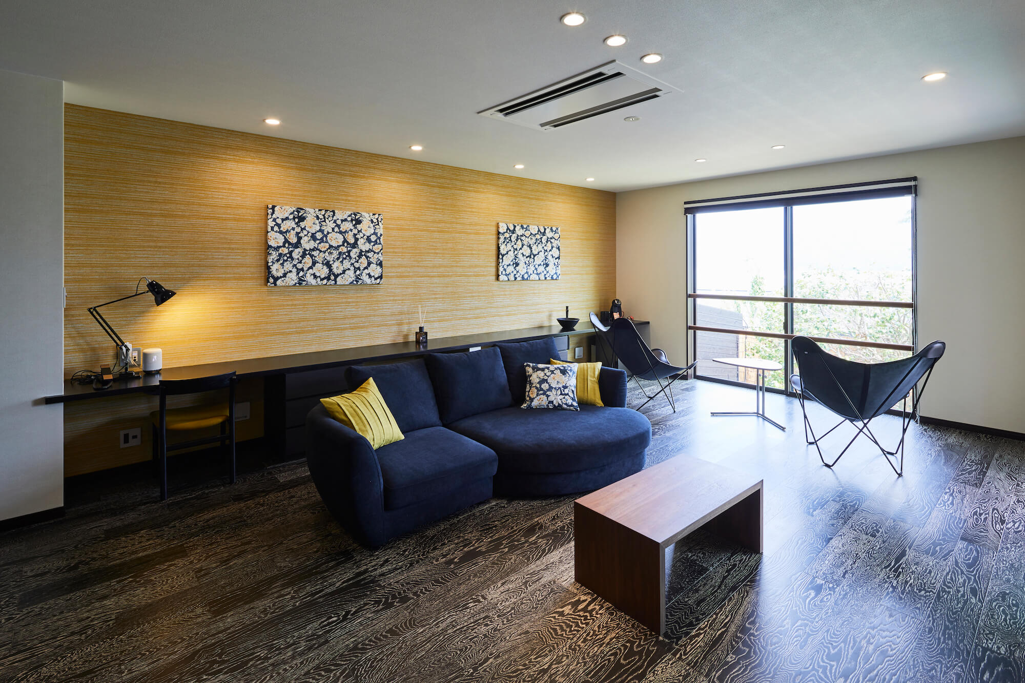 【面積】 66㎡ 【寝具】 Serta社セミダブルベッド(120×200cm)2台 【浴室】 ラドンが豊富な宮浜温泉の源泉、美泡湯装置、Bluetoothスピーカー、月明かりのようなLED照明 【テレビ】 BRAVIA65インチ、YouTube視聴可能 【着替え】 部屋着:シャツガウン、館内外着:上下織物の作務衣・靴下 【履物】 テラス用サンダル、雪駄(男女デザイン別) 【バッグ】 麻の風呂敷バッグと湯かご 【アメニティ】 英国Laura Ashley製シャンプー・コンディショナー・ボディーソープ、シャワーキャップ、POLAスキンケアセット、歯ブラシセット、コットン、綿棒、ヘアゴム、ヘアブラシ、カミソリ、ドライヤー、ボディータオル、ハンドソープ(フェイス・シェイビング兼用)、使い捨てスリッパ、拡大鏡、虫対策グッズ 【電化製品】 冷蔵庫(冷凍室なし)、電気ポット、空気清浄機(加湿器付き)、金庫、スマートスピーカー(グーグルホーム)、Dolce Gustoコーヒーメーカー、携帯充電器、デスクライト
