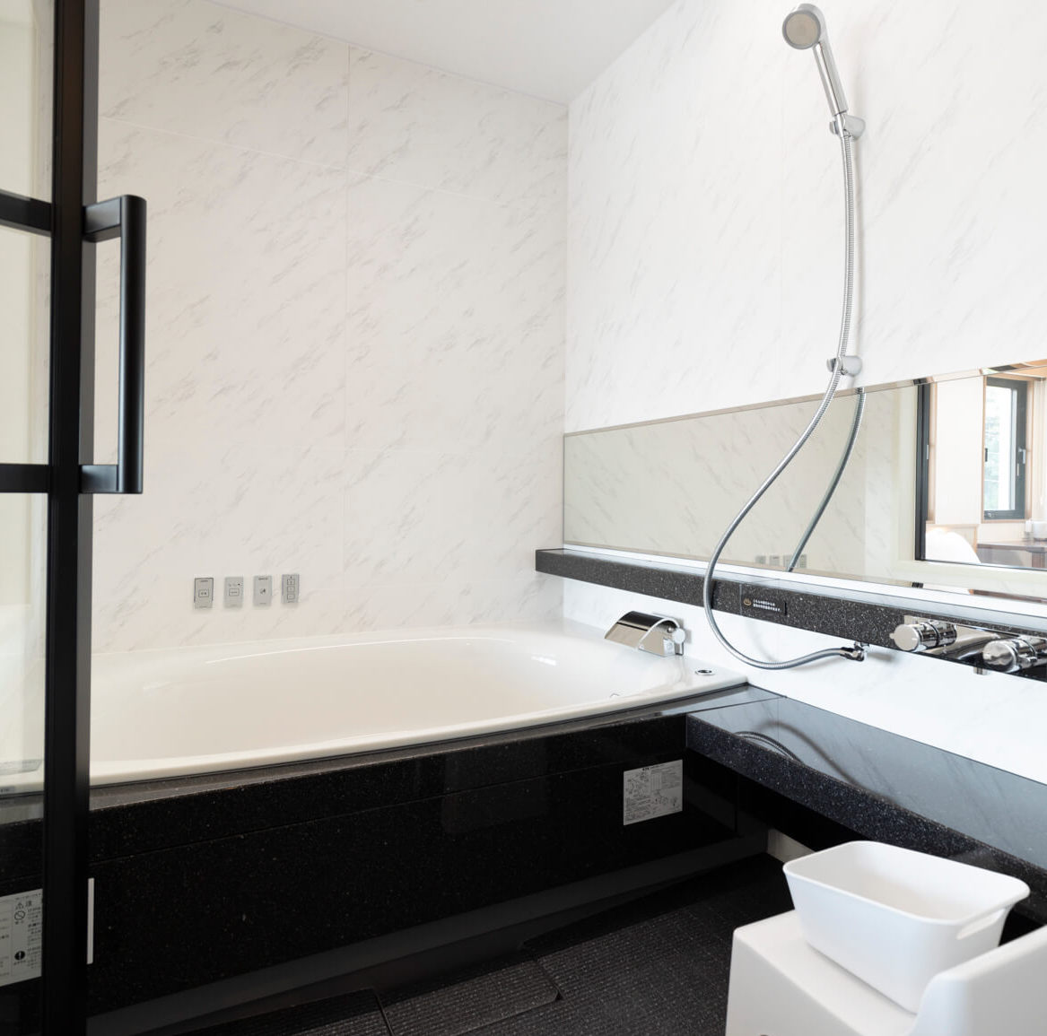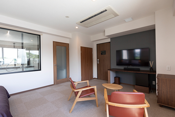 【面積】 202号:43㎡(フローリング)/305号:35㎡(絨毯) 【寝具】 Serta社キングサイズベッド(180×200cm)1台 【浴室】 ラドンが豊富な宮浜温泉の源泉、美泡湯装置、Bluetoothスピーカー、月明かりのようなLED照明 【テレビ】 BRAVIA55インチ、YouTube視聴可能 【着替え】 部屋着:シャツガウン、館内外着:織物の上着・ストレッチパンツ・靴下 【履物】 雪駄(男女デザイン別) 【バッグ】 麻の風呂敷バッグと湯かご 【アメニティ】 英国Laura Ashley製シャンプー・コンディショナー・ボディーソープ、シャワーキャップ、POLAスキンケアセット、歯ブラシセット、コットン、綿棒、ヘアゴム、ヘアブラシ、カミソリ、ドライヤー、ボディータオル、ハンドソープ(フェイス・シェイビング兼用)、使い捨てスリッパ 【電化製品】 冷蔵庫(冷凍室なし)、電気ポット、空気清浄機(加湿器付き)、金庫、スマートスピーカー(グーグルホーム)
